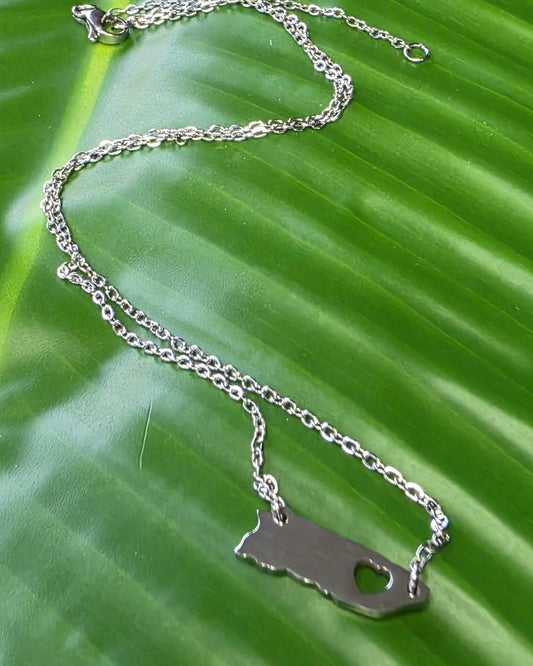 Puerto Rico Map Necklace with Heart – Stainless Steel (17”)