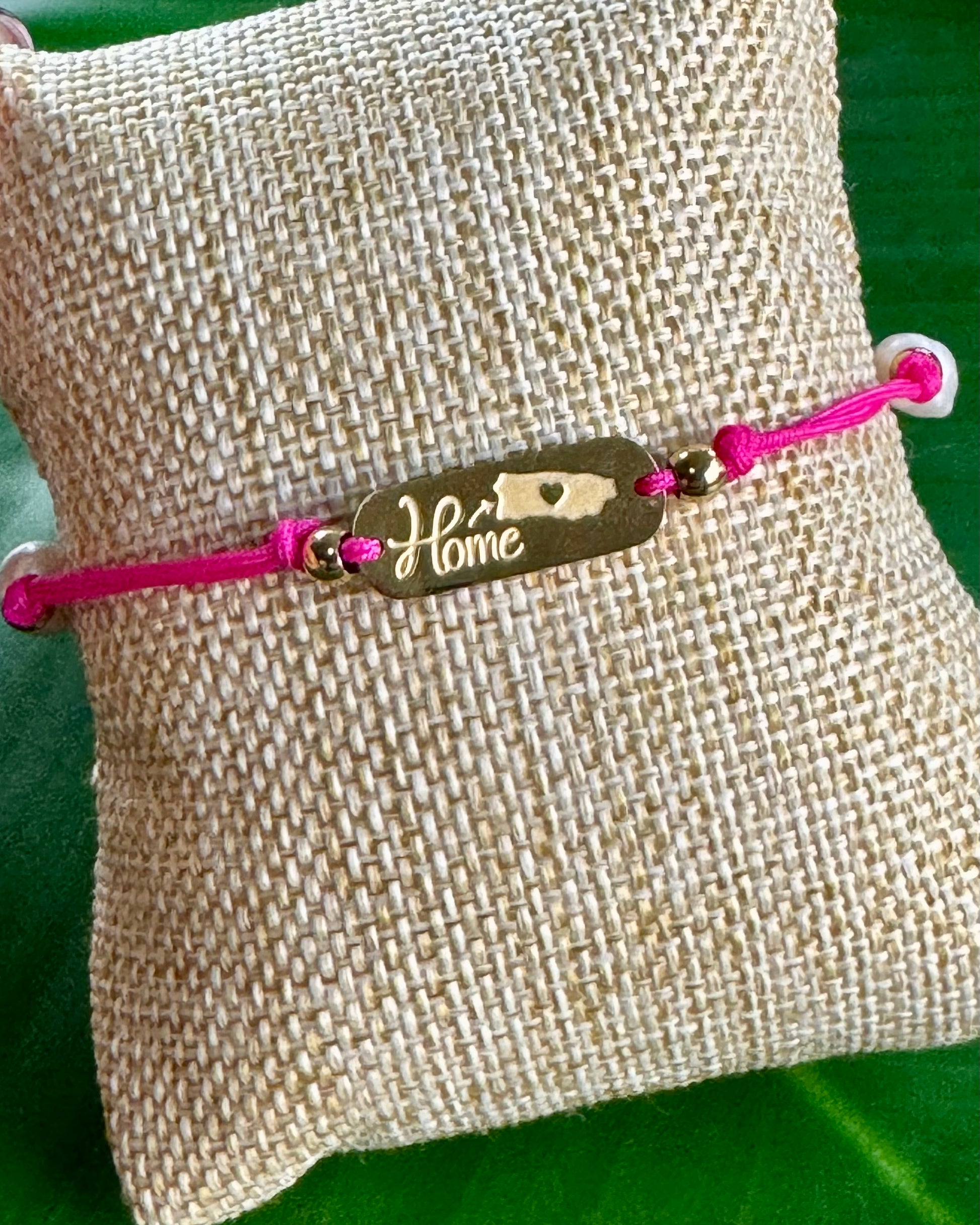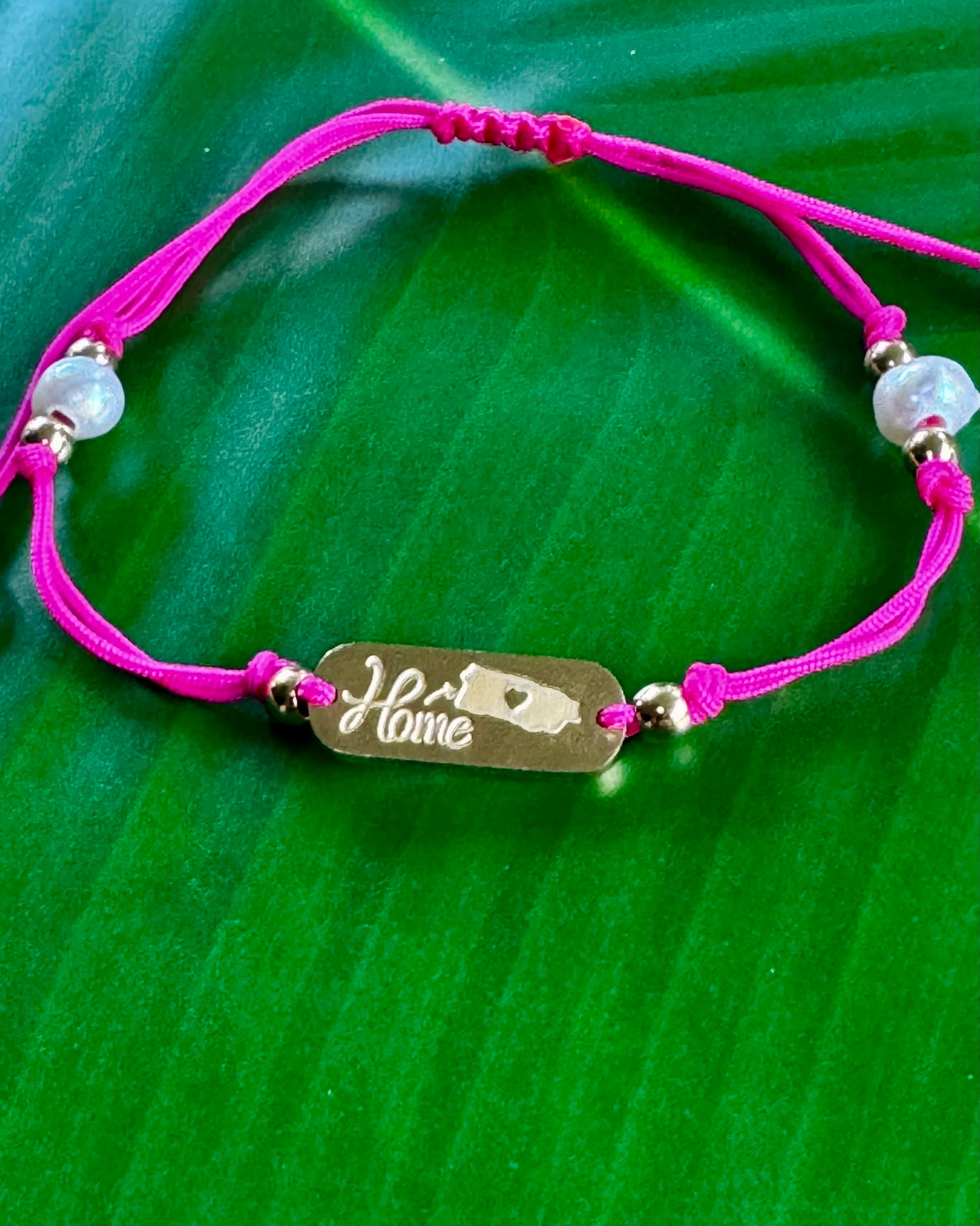 Experience the warm embrace of home with our Home 🤍 Bracelet Fuchsia. This charming bracelet features a fuchsia string, pearls, and a charming home and Puerto Rico island charm. Let this bracelet serve as a reminder of where your heart truly lies.
