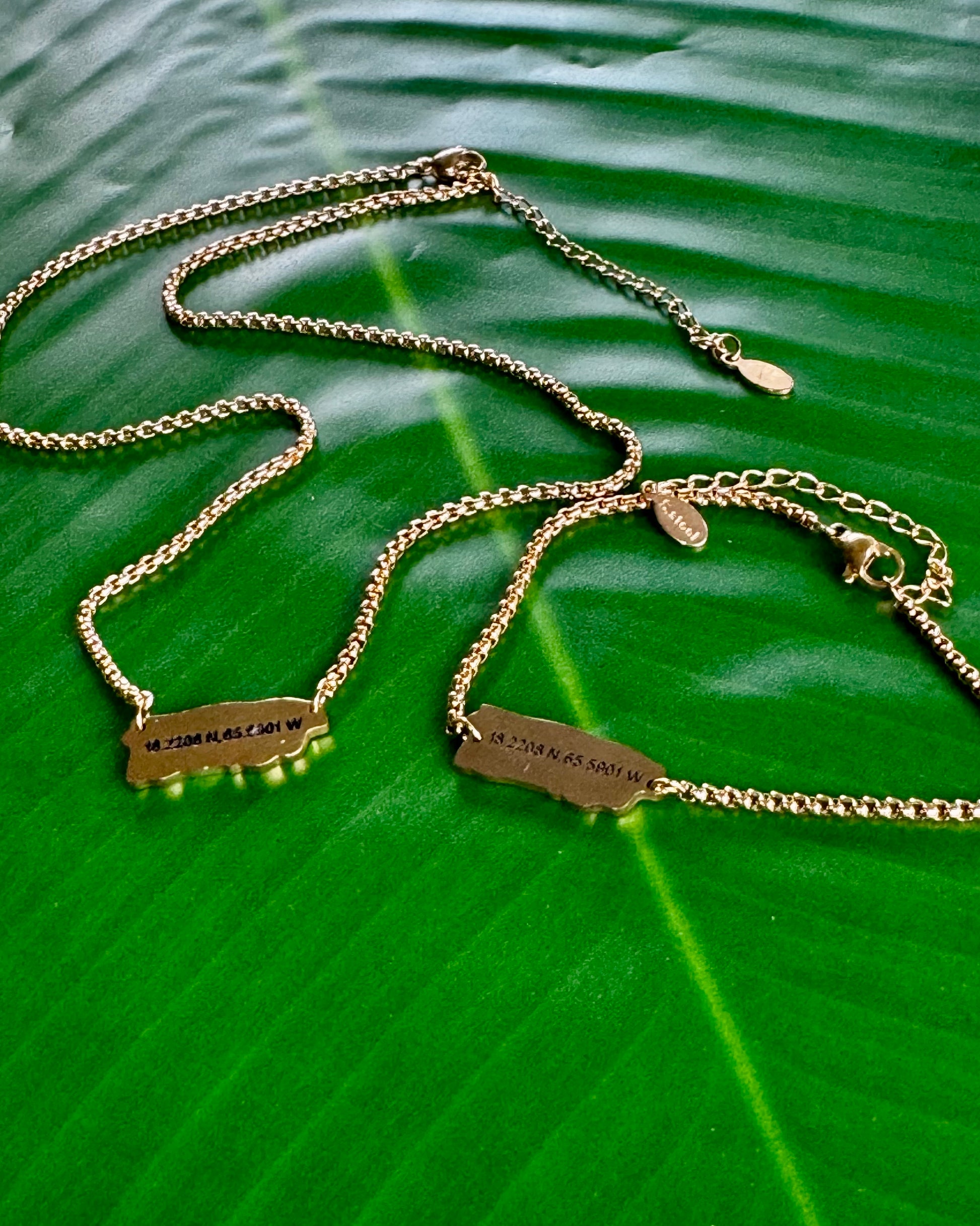 Experience the beauty of Puerto Rico with our coordinates bracelet. Made from gold stainless steel, this bracelet features the exact coordinates of this stunning Caribbean island. A must-have for any travel enthusiast or for those with a special connection to Puerto Rico. You can combine with necklace 🇵🇷