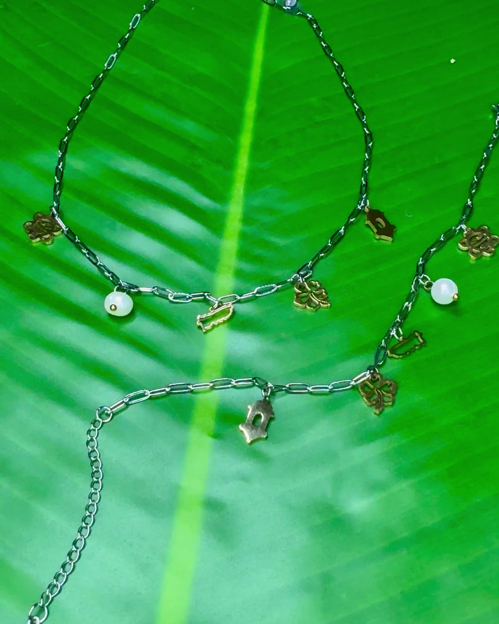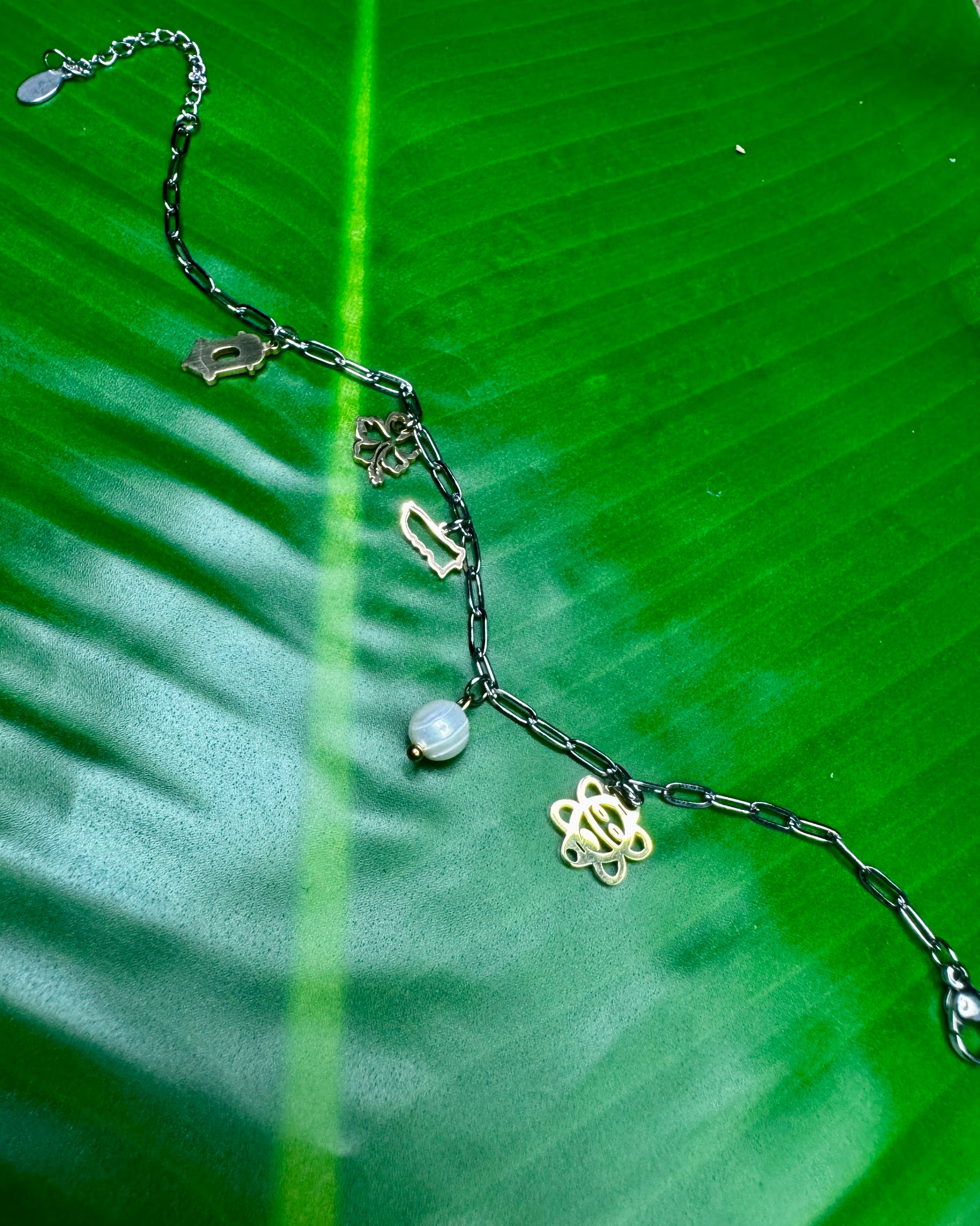 Two Tone Puerto Rico Charm Pearl Bracelet