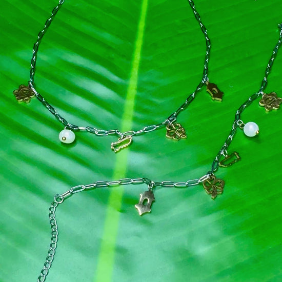 Add a touch of Puerto Rican charm to your look with this two- tone stainless steel bracelet, featuring a beautiful mix of symbolic charms that celebrate the island’s culture and beauty.